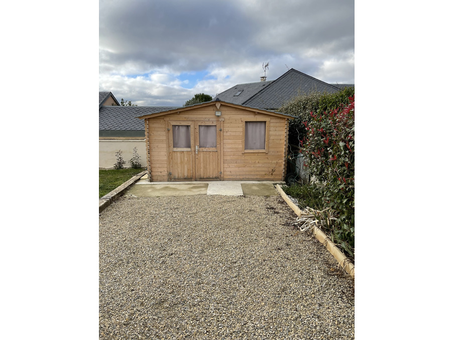 Cette maison offre le chauffage au sol, une terrasse carrelée de 25m2 exposée Sud et un abri de jardin d'environ 12m2.