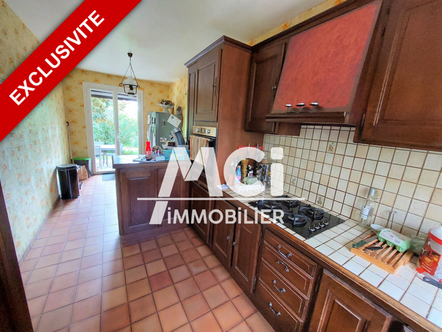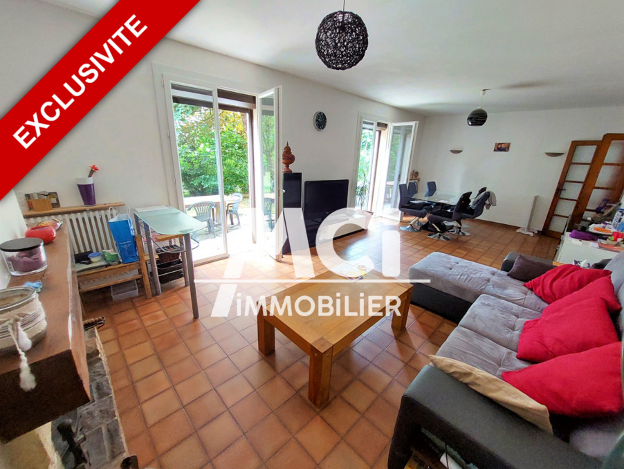 RDC : Séjour lumineux de 32 m2 avec cheminée et accès terrasse, cuisine séparée de 17 m2, le tout pouvant être réunie permettant un bel espace d'environ 50 m2 avec un accès direct sur le joli terrain avec son espace barbecue
