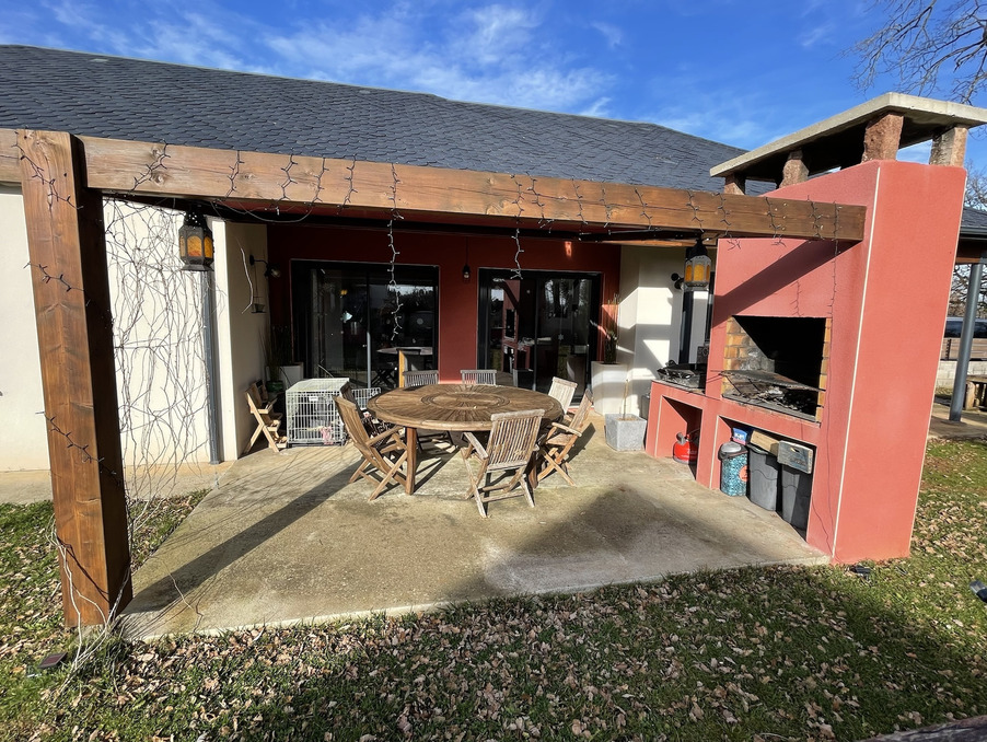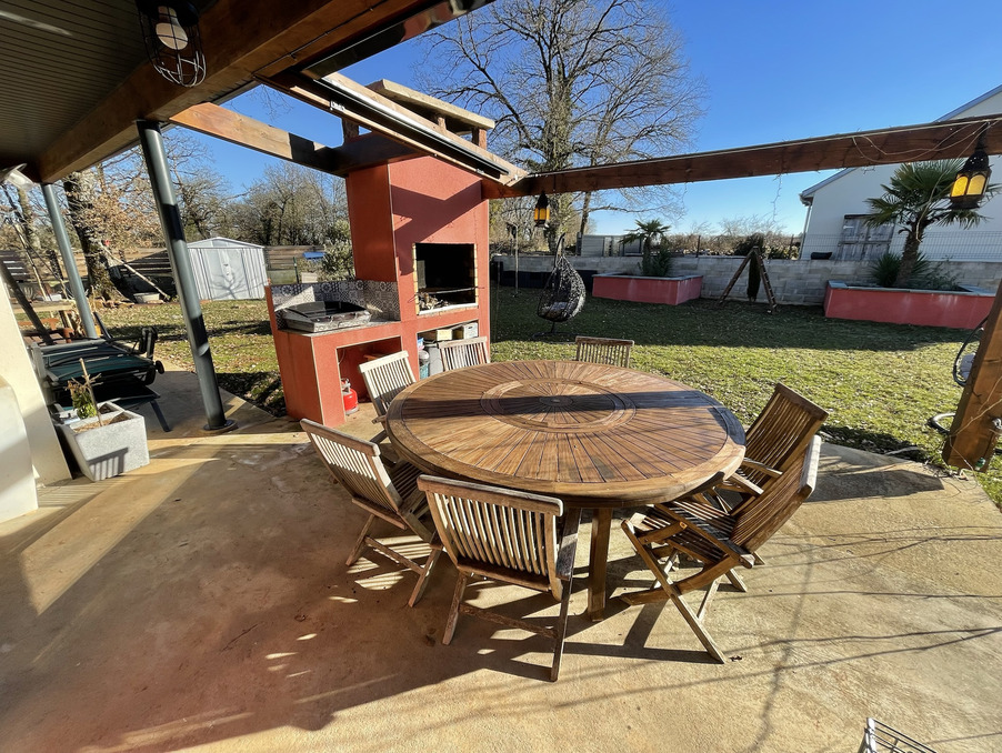 Egalement, une terrasse couverte (store électrique) et aménagée de 15m2 vous permettra de passer d'agréables moments autour du barbecue.