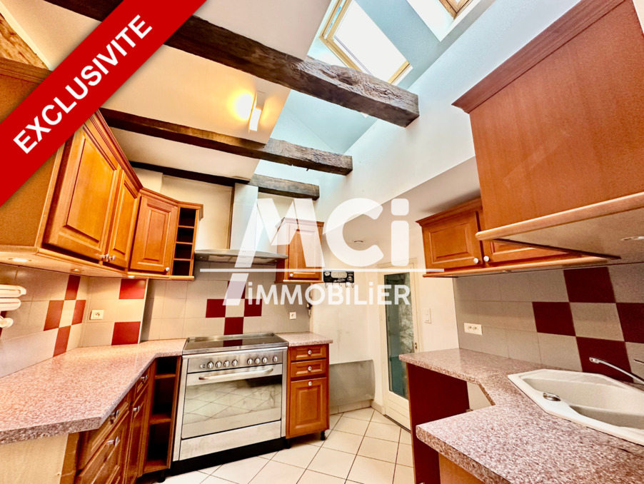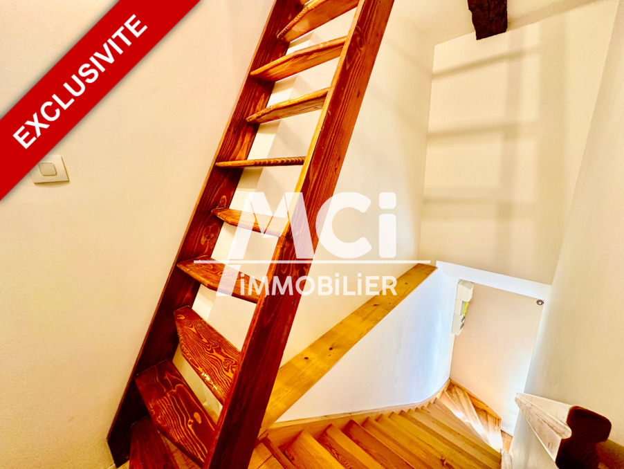 1er étage : Une grande pièce à vivre avec un poêle, une cuisine, un wc